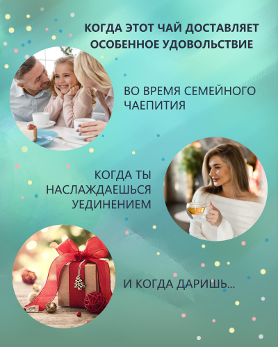 Этот чай станет идеальным дополнением к праздничному столу или просто приятным сюрпризом для любимых. Мерцающая упаковка добавит праздничности и волшебства новогоднему подарку. Дарите с удовольствием друзьям, партнерам, коллегам, родным и близким.
