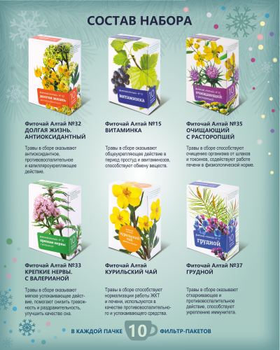 С информацией по применению каждого фитопродукта из набора вы можете ознакомиться в разделе «Состав набора».